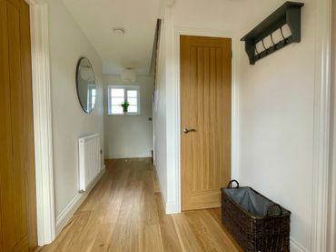 In the hallway are racks for coats and keys, as well as a storage cupboard.